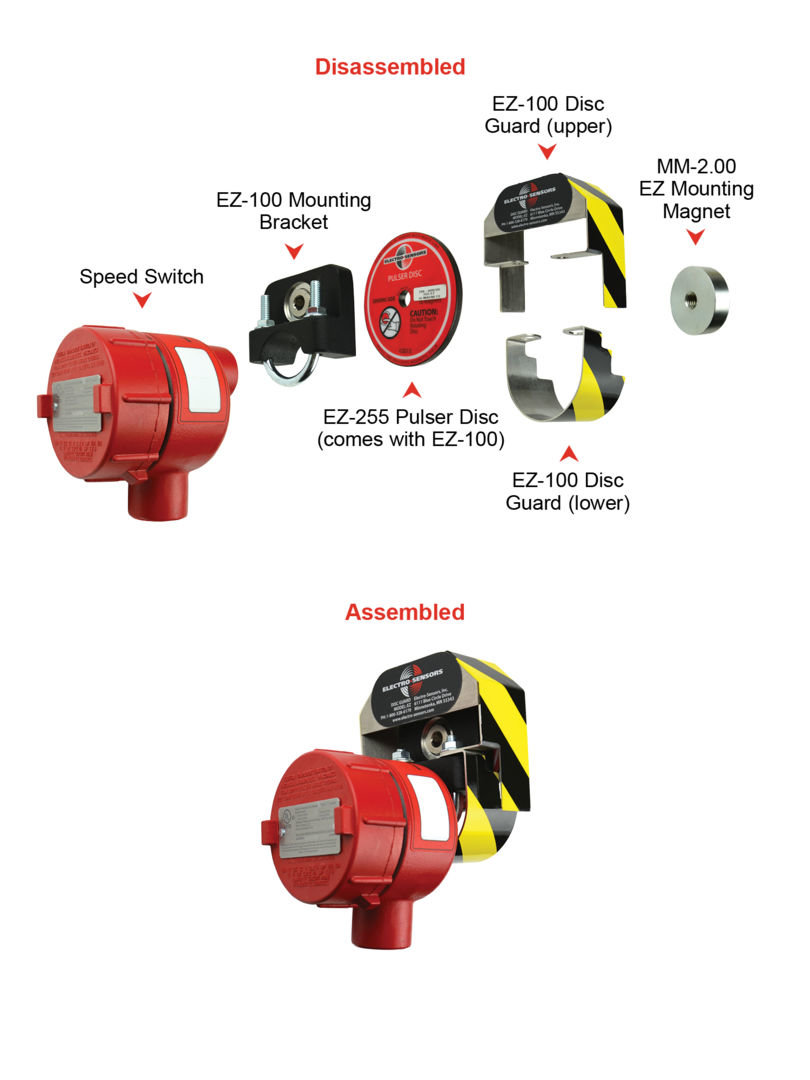 Internal sensor spdt relay output 5 100 rpm m100t 100 5 000 rpm m5000t under speed setting terminal block for easy wiring 115 230 vac 50 60 hz and 12 24 vdc power options works with electro sensors magnetic pulser discs wraps optional ez 100 mounting bracket and mounting magnet.
